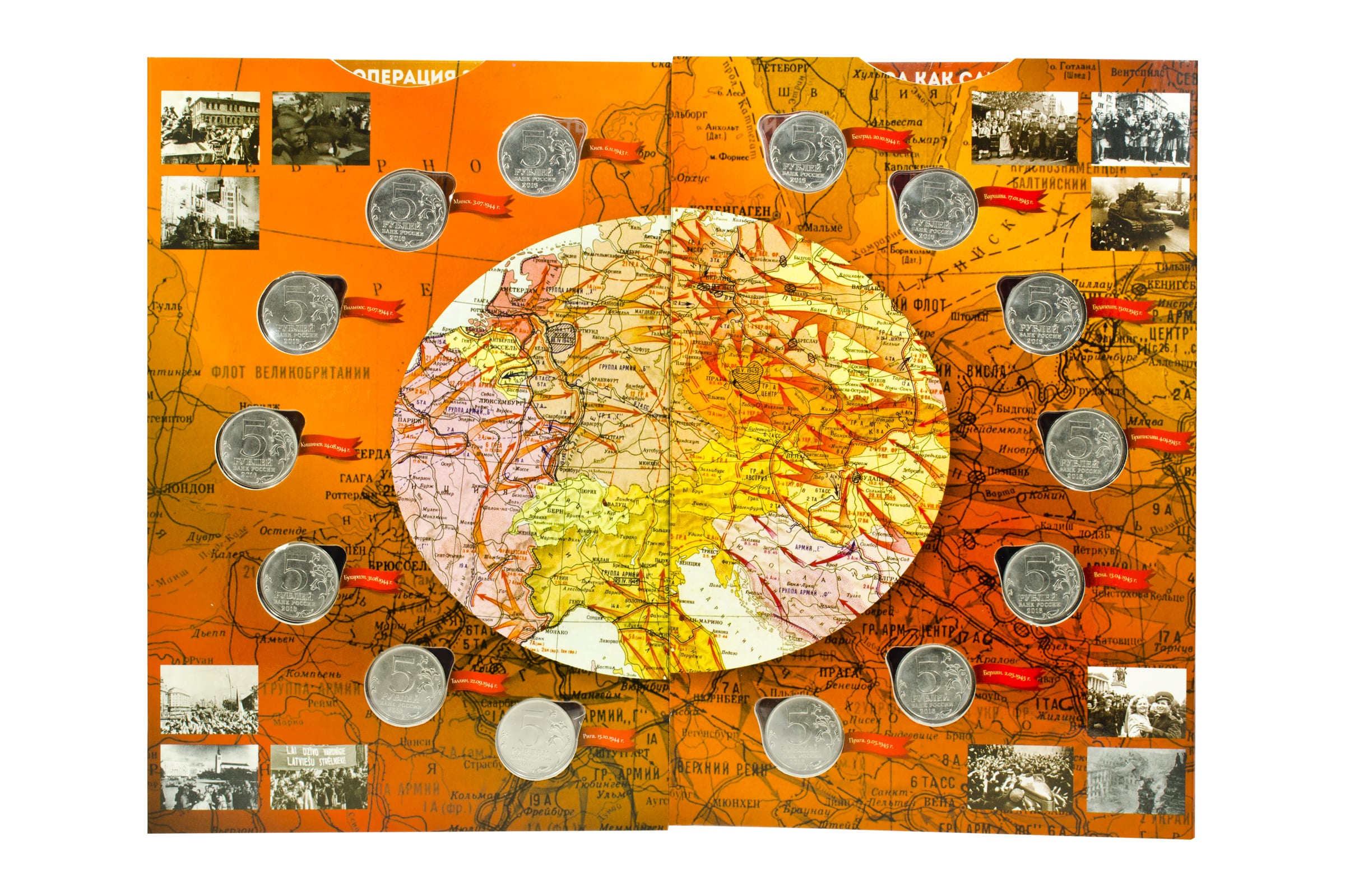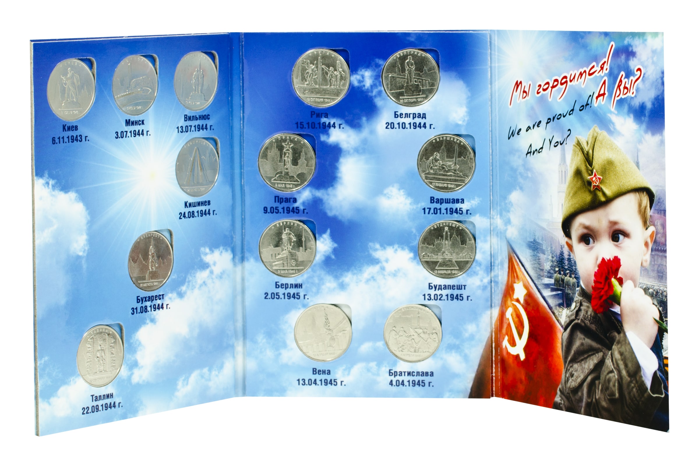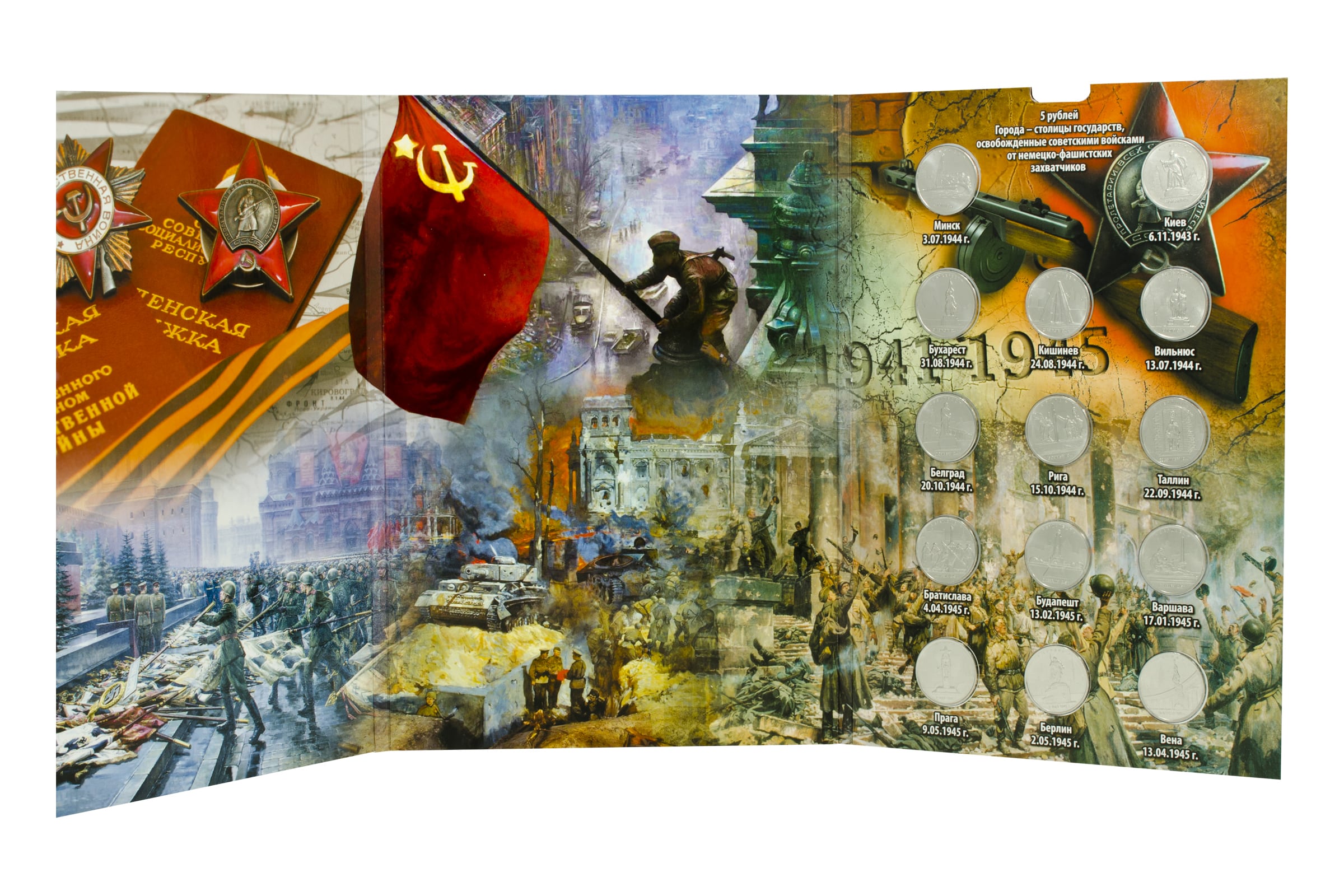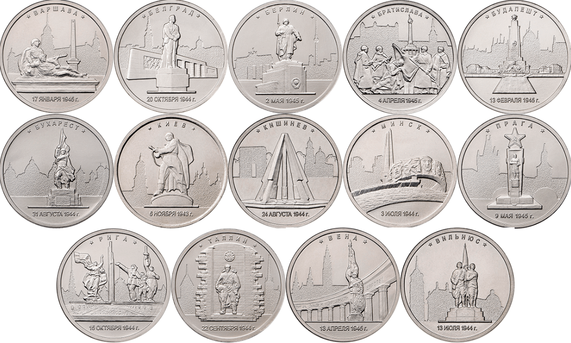 14 монет серии «Города-столицы государств, освобожденные советскими войсками от немецко-фашистских захватчиков»