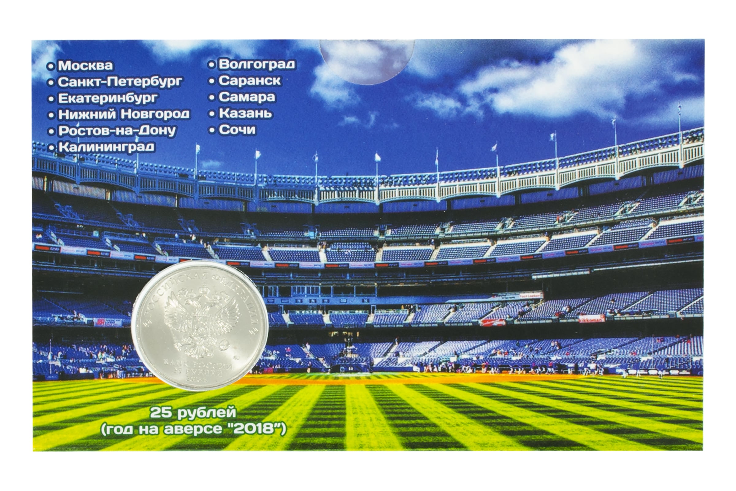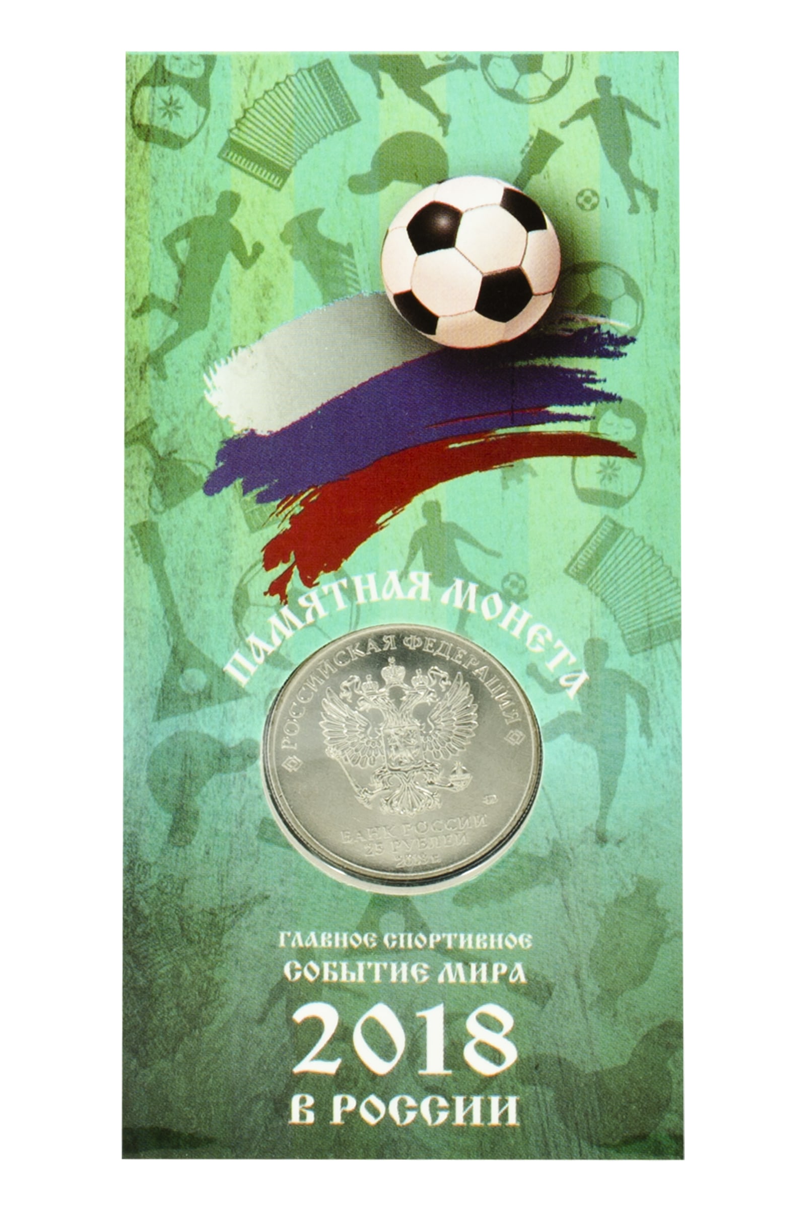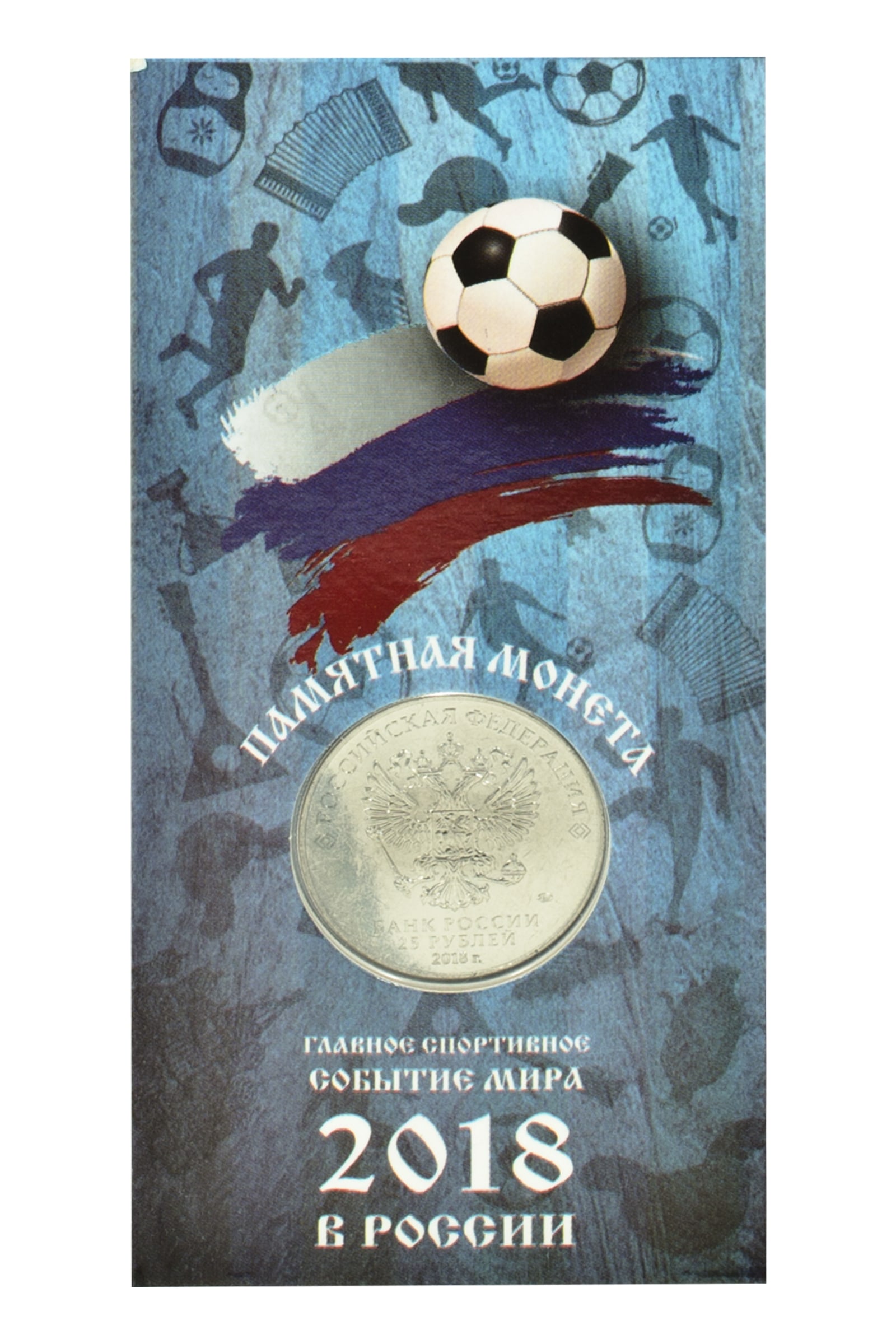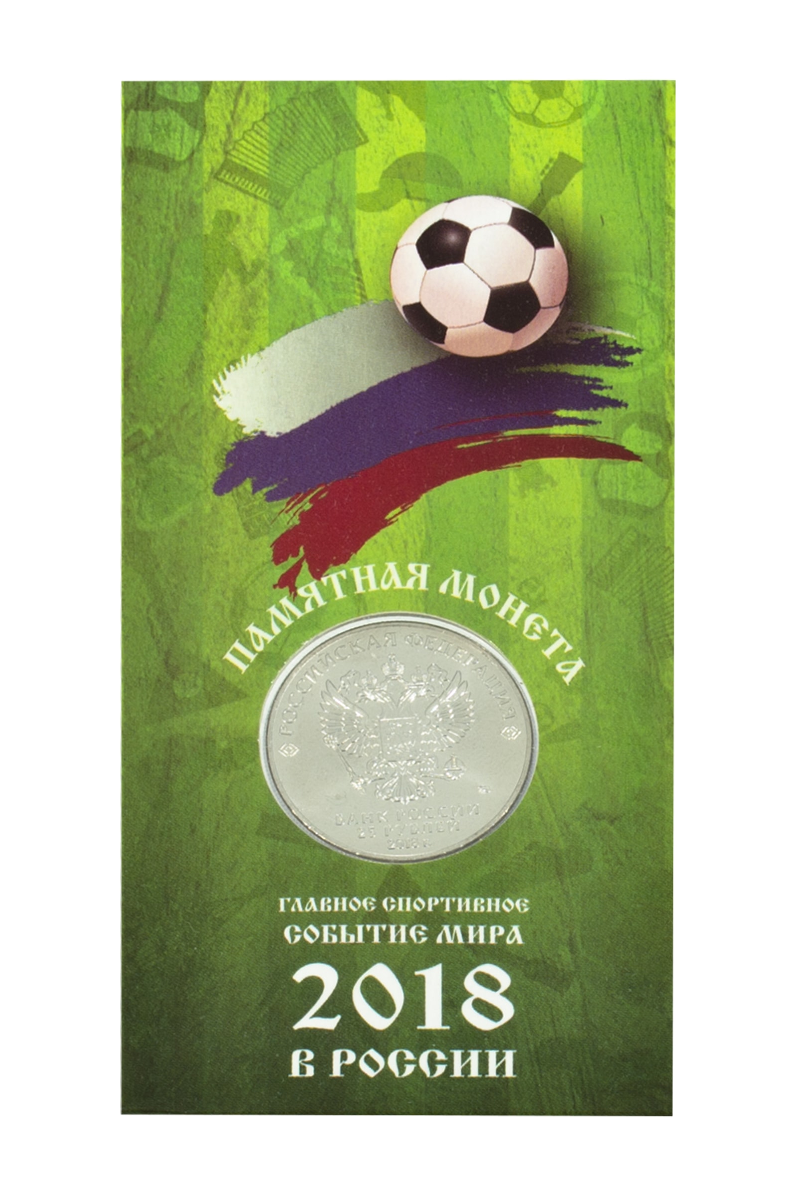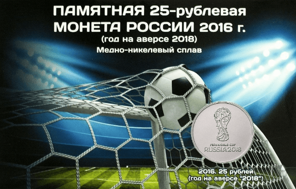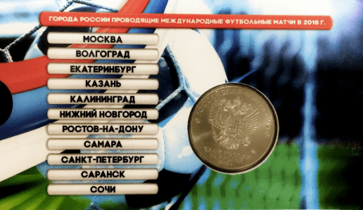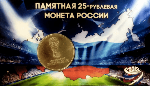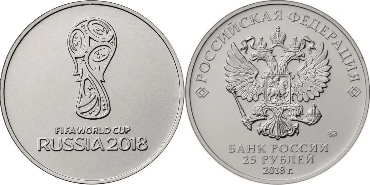 На монете изображена Эмблема Чемпионата мира по футболу 2018.