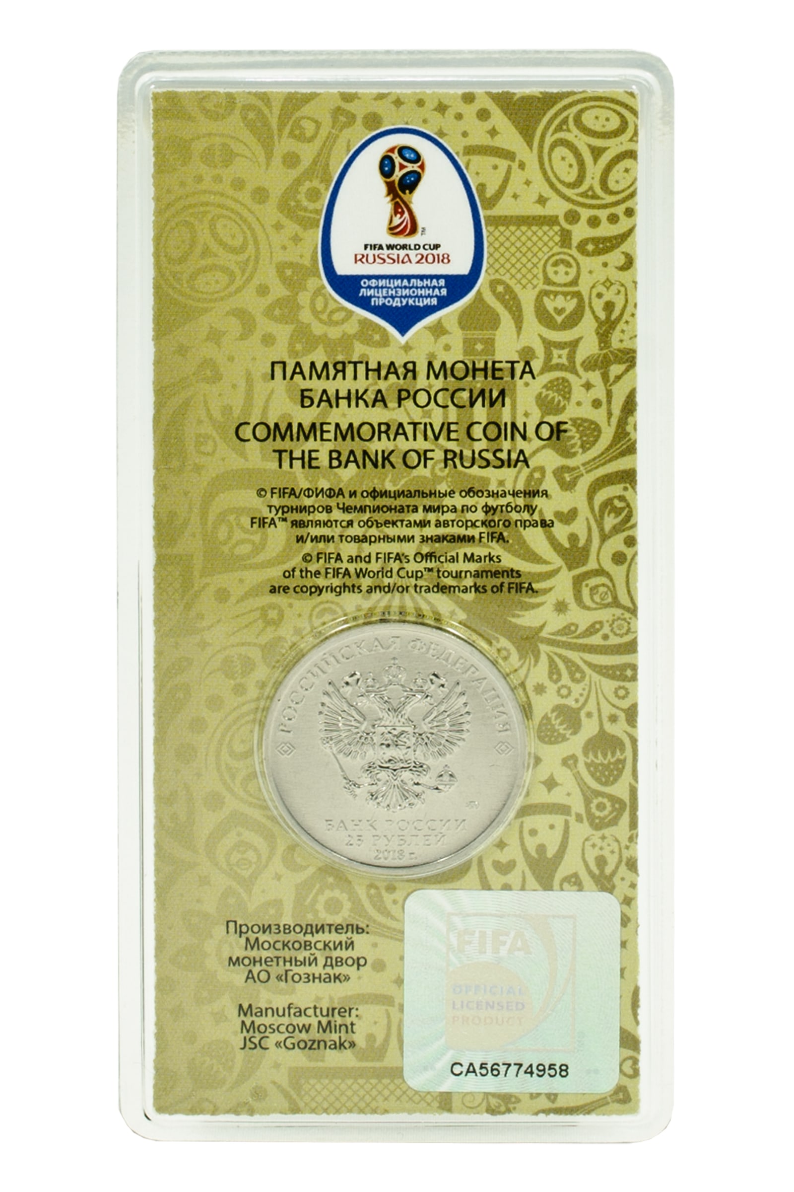 Артикул 5: Альбом "Чемпионат мира по Футболу 2018, Кубок" (цветная монета, бежевая упаковка)