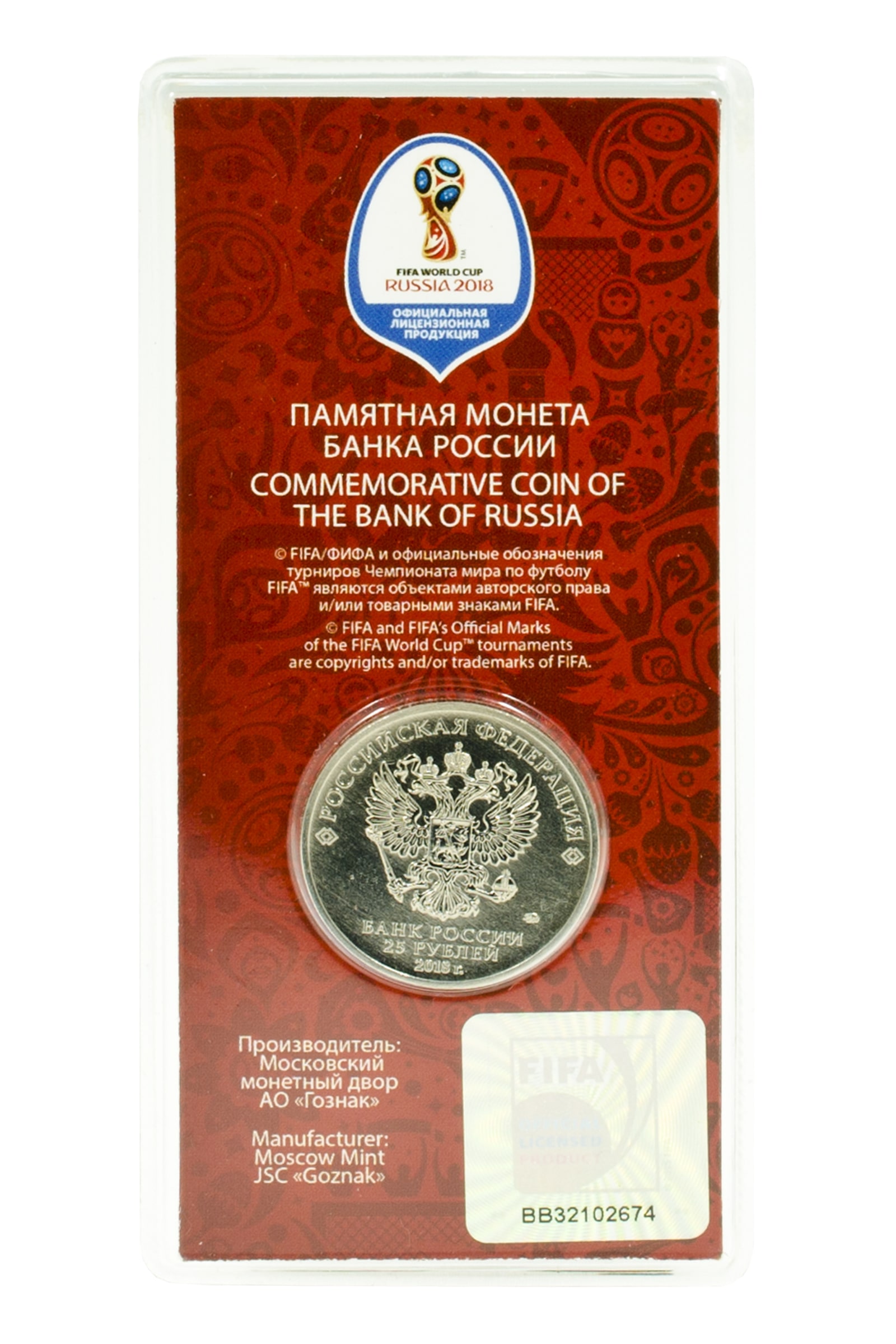 Артикул 6: Альбом "Чемпионат мира по футболу 2018, Эмблема, (цветная монета, красная упаковка)
